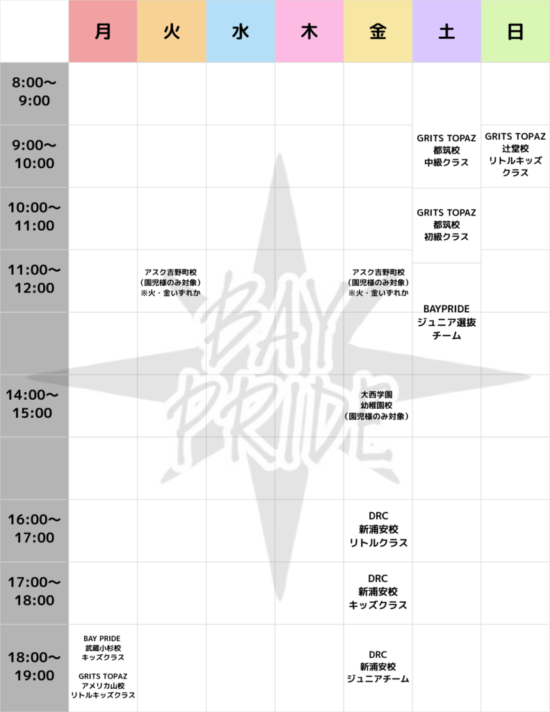 ※レッスンスケジュールは別途カレンダーをお配りさせていただきます。